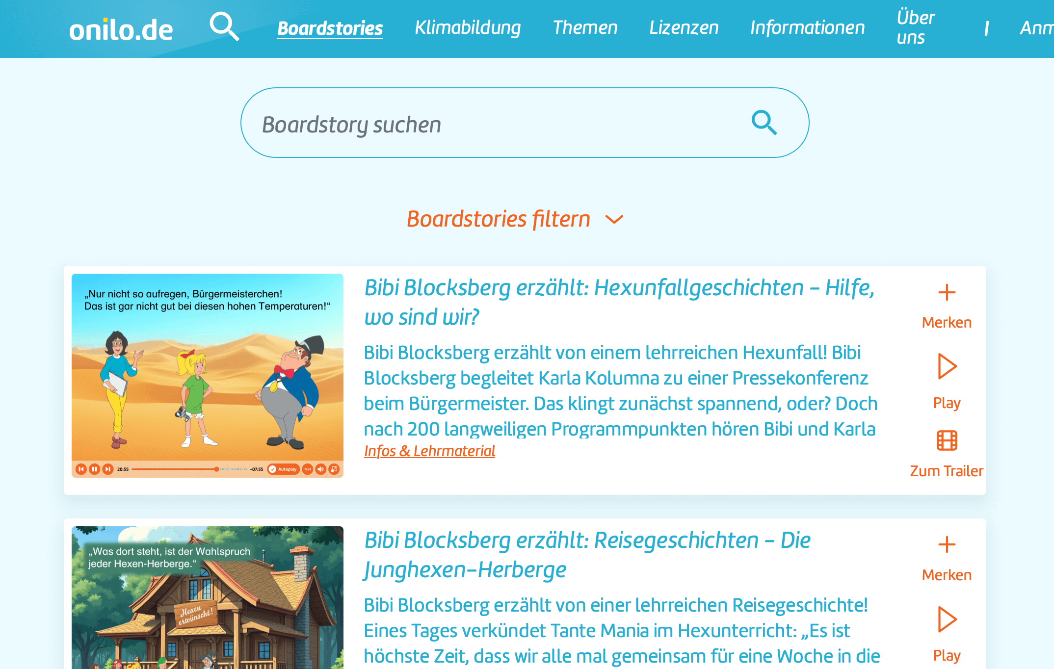 Eine große Auswahl an Boardstories mit praktischen Funktionen für ein optimales Lernerlebnis.